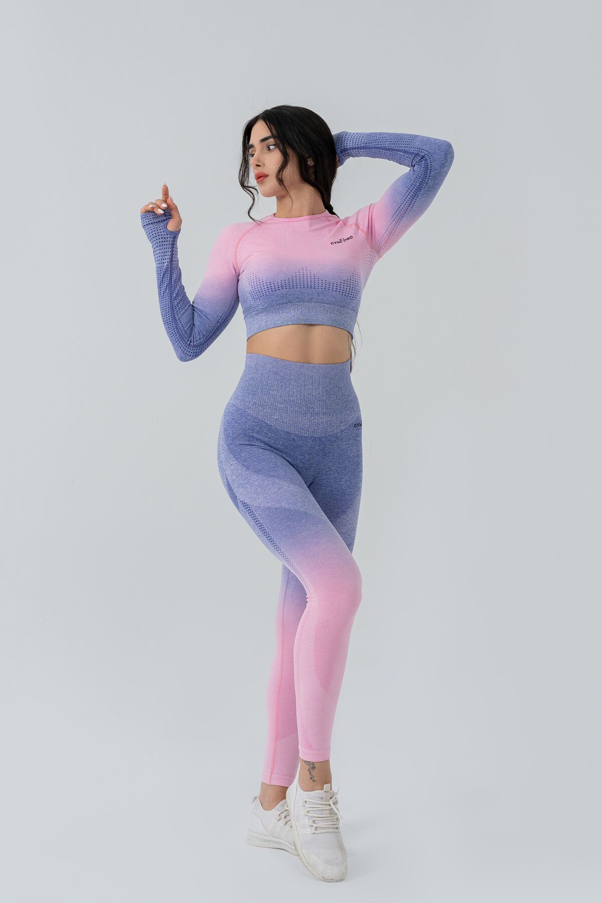 Dikişsiz Pusph-up Degrade Desen Toparlayıcı Spor Tayt Mor