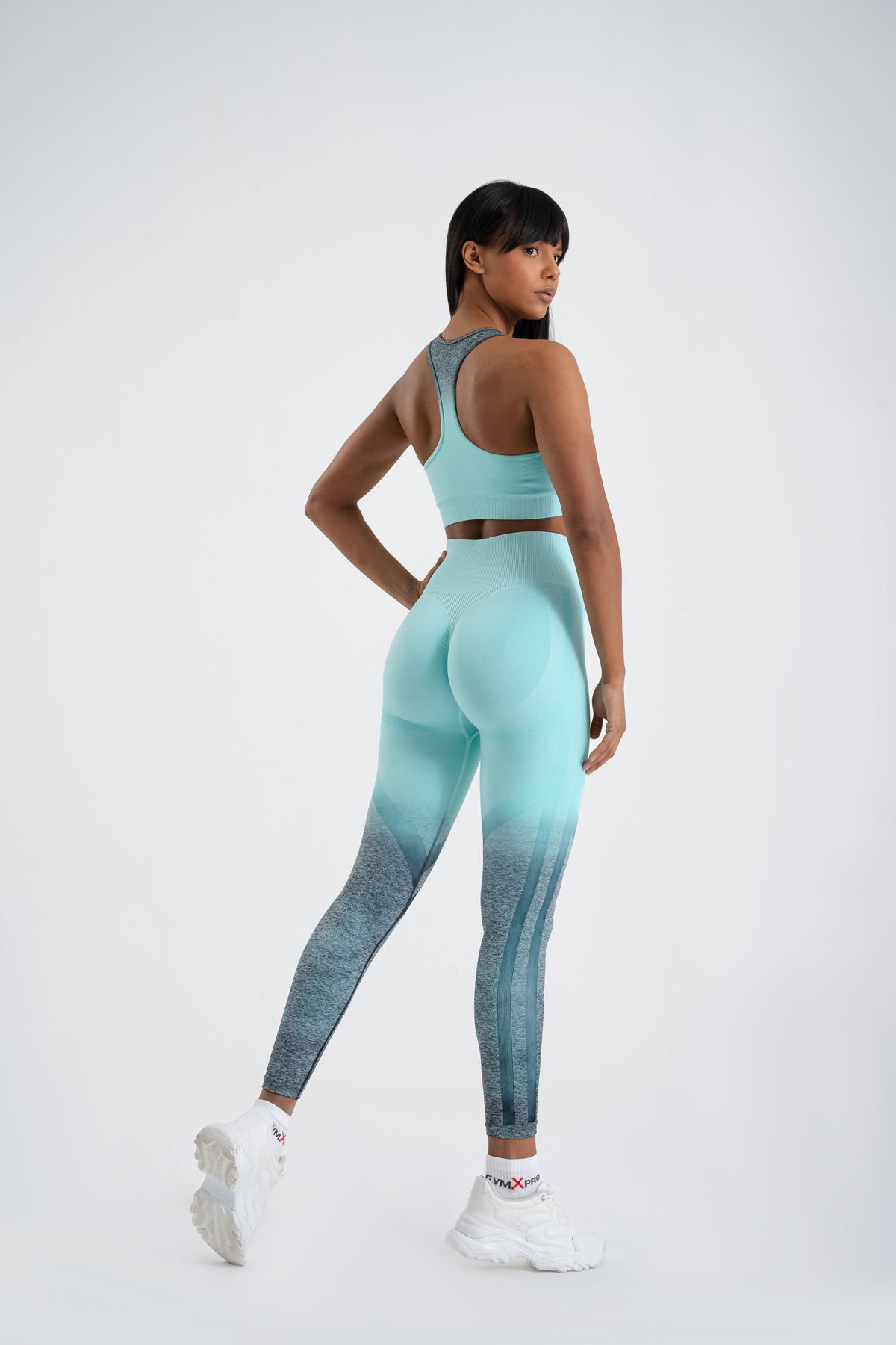Süper Esnek Push-up Detaylı Toparlayıcı Degrade Takım TURKUAZ-GRİ